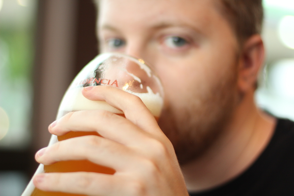 Serve uma cerveja artesanal deliciosa de trigo, entre outras, e hambúrgueres caseiros muito saborosos.