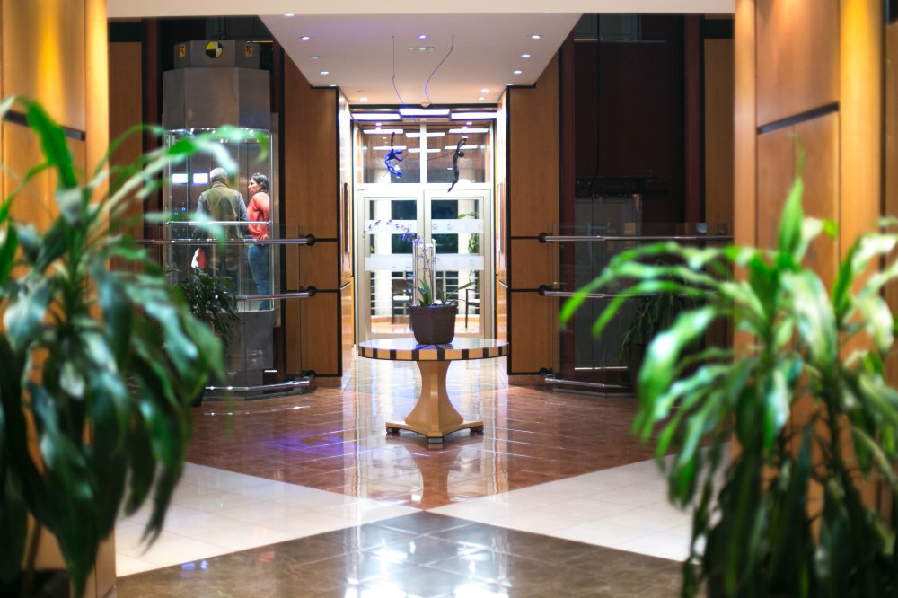 O hotel é bem completo com spa, piscinas e restaurantes. Existe também um jardim e um terraço com vista para a tríplice fronteira.