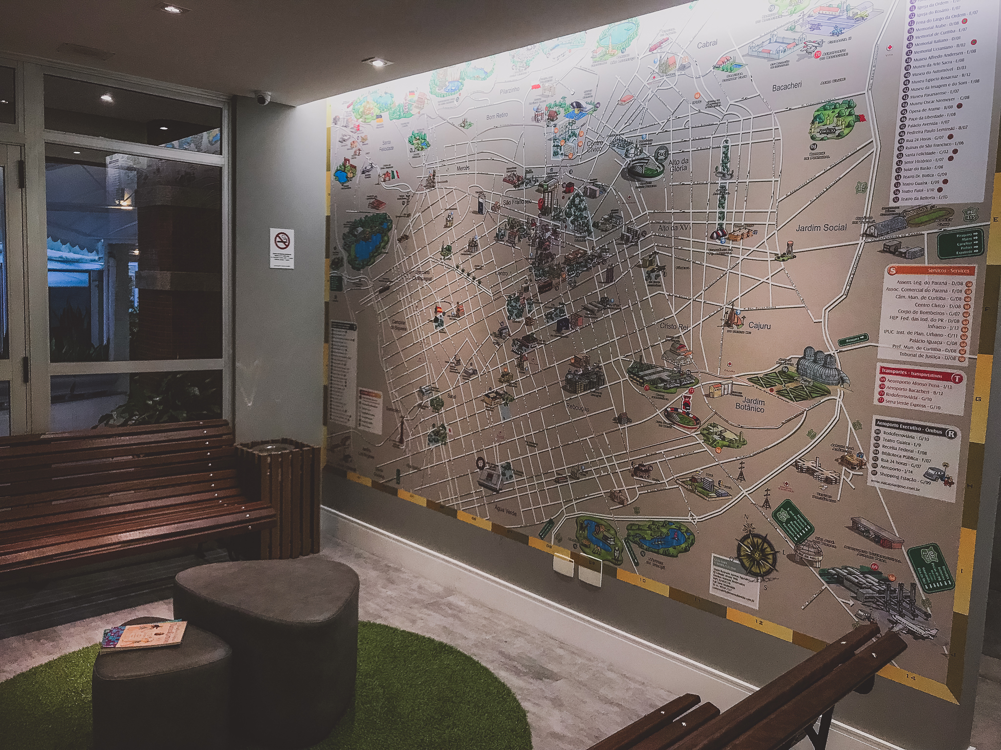 O tema do hotel é “Parques de Curitiba”, assim, cada andar recebe um tema, o meu andar era o Parque Tingui, então no meu quarto havia uma simpática Capivara.