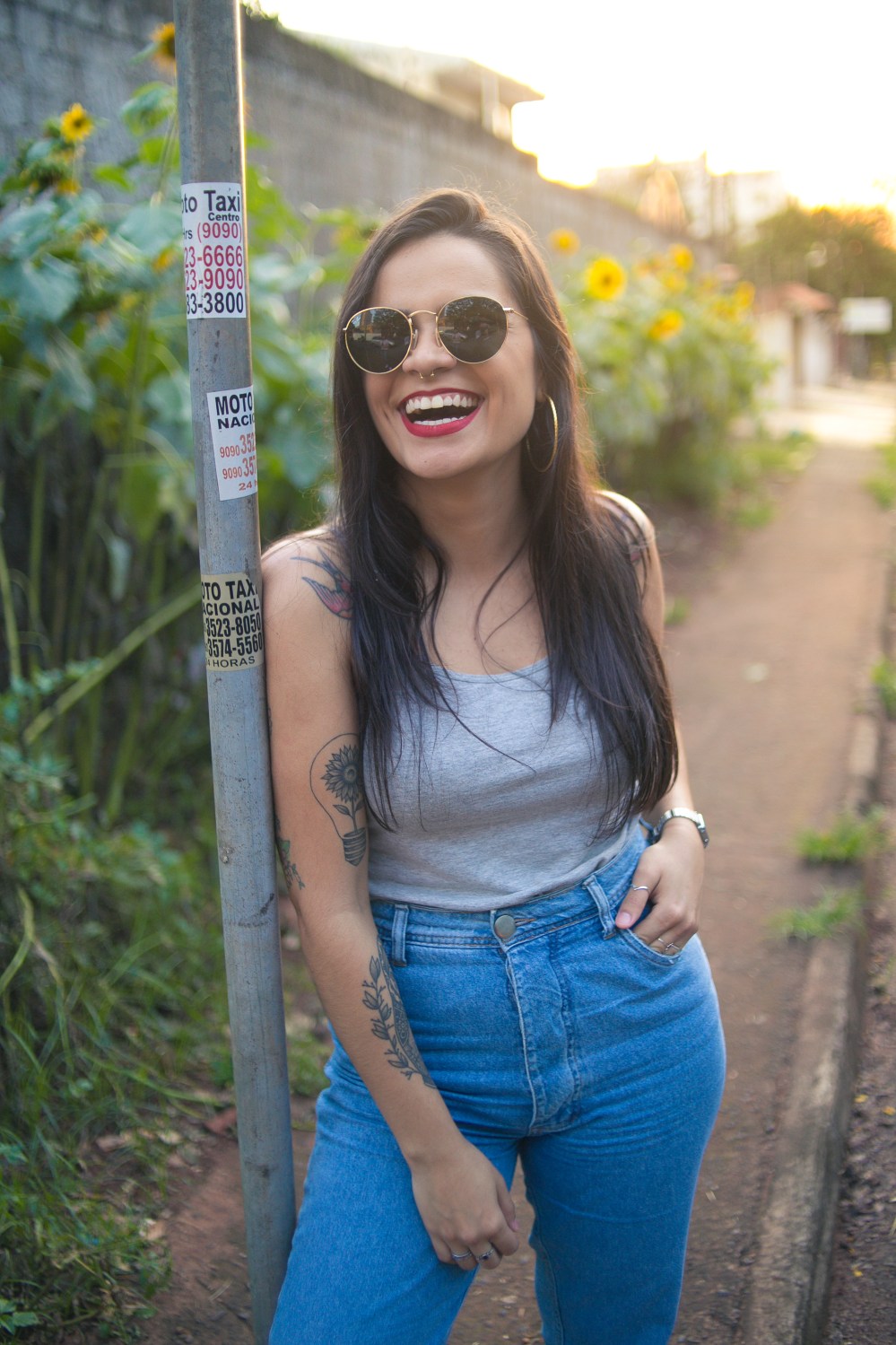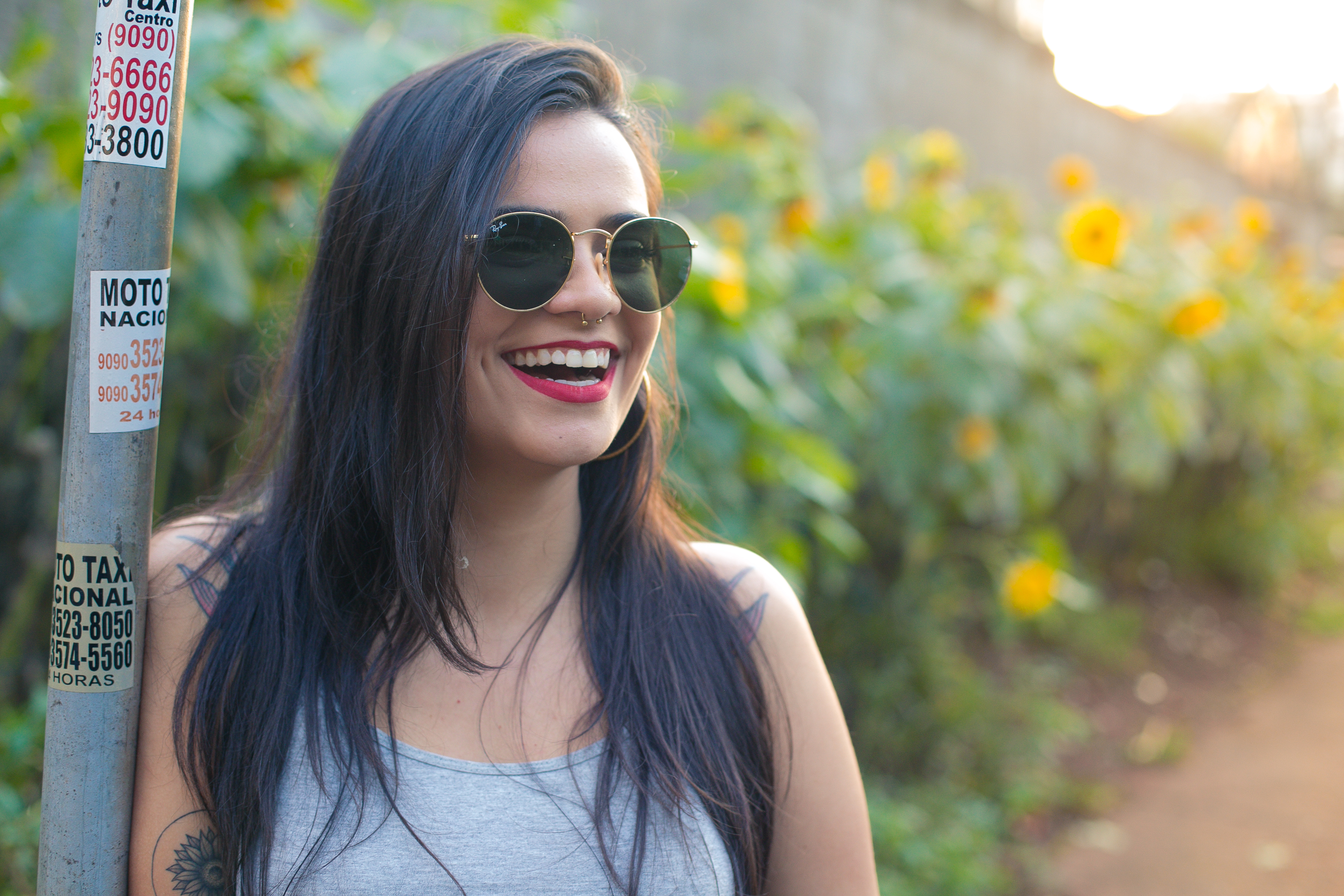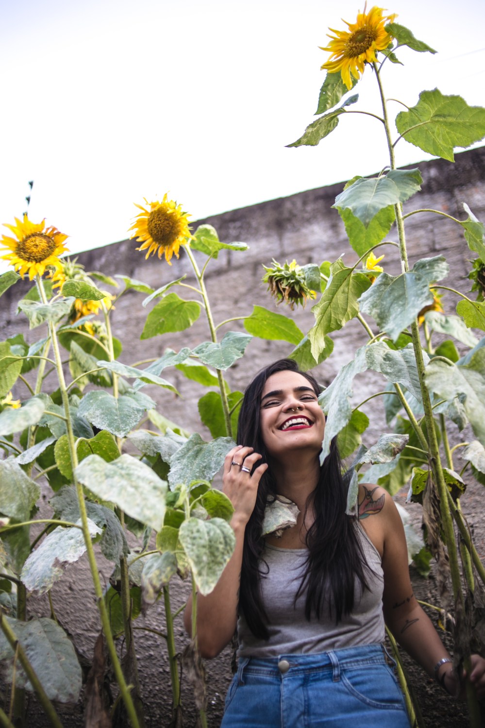 Fizemos as fotos em outubro. Eu passei por um campo de girassóis no centro de Foz e mandei uma mensagem para a Carol “Encontrei um lugar delicia para tirar fotos. Vamos?”. Ela deu a sugestão de fotografarmos uma amiga nossa, a Amanda que é a louca dos girassóis, e que, inclusive tem até girasol no couro.