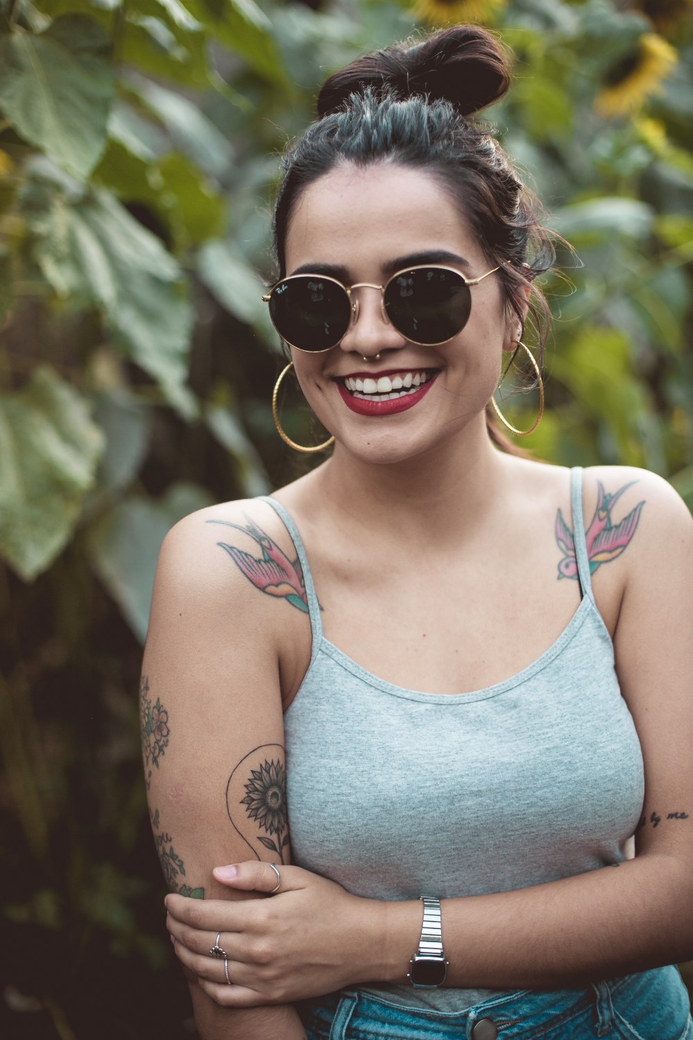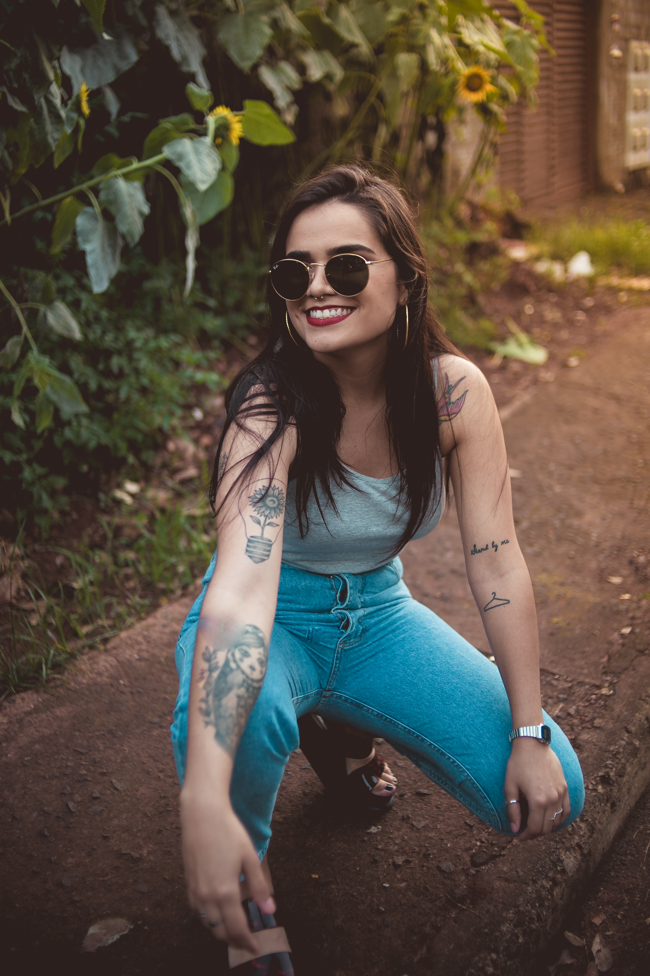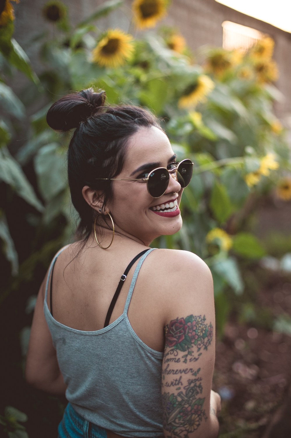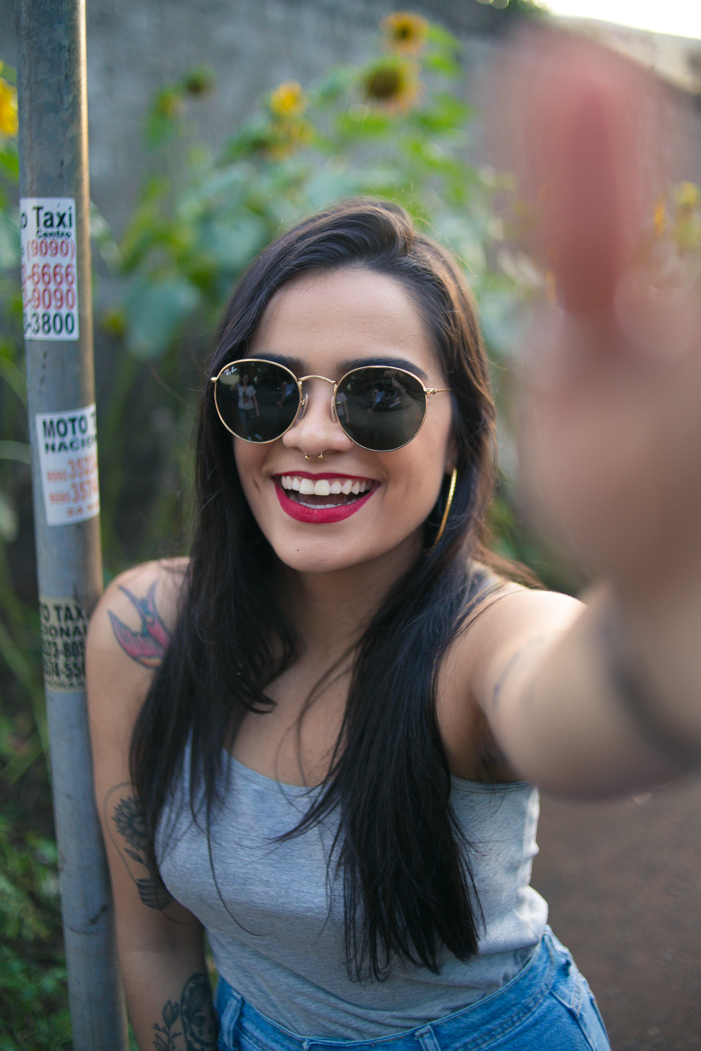 Fizemos as fotos em outubro. Eu passei por um campo de girassóis no centro de Foz e mandei uma mensagem para a Carol “Encontrei um lugar delicia para tirar fotos. Vamos?”. Ela deu a sugestão de fotografarmos uma amiga nossa, a Amanda que é a louca dos girassóis, e que, inclusive tem até girasol no couro.